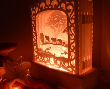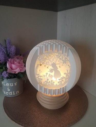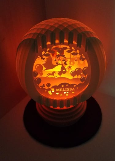 Chaque lampe est réalisée à la main avec soin et passion. Grâce à un processus minutieux de découpe et d'assemblage, elles offrent un effet 3D captivant qui saura séduire petits et grands.